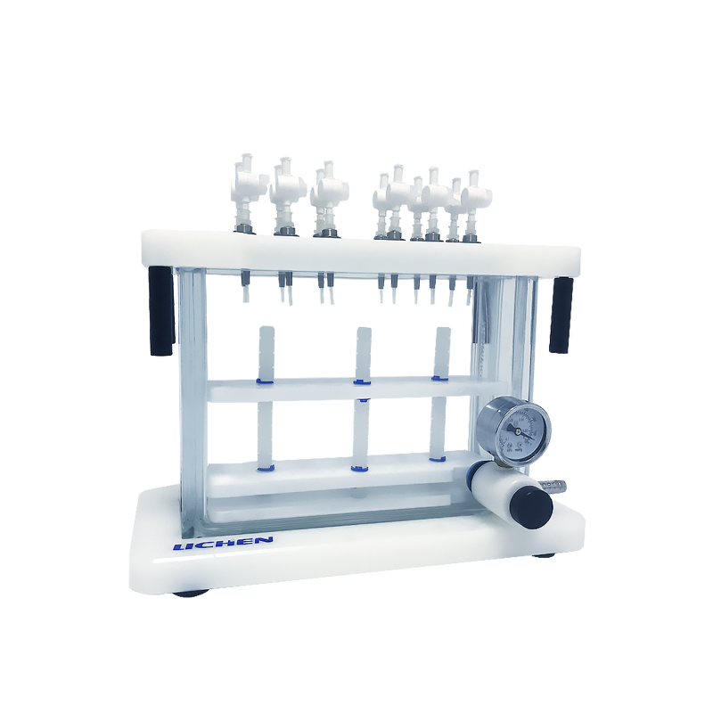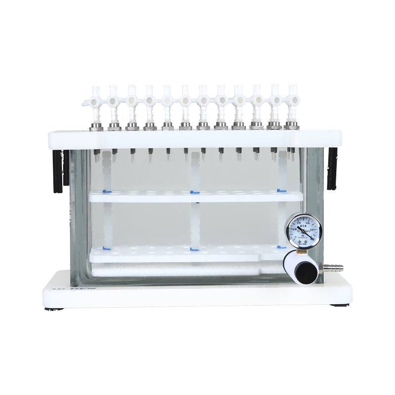 1、固相萃取装置真空槽是由透明石英玻璃制作,耐有机试剂腐蚀。